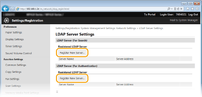 Kliknite na [Register New Server] za [LDAP Server (For Search)] ili [LDAP Server (For Authentication)].