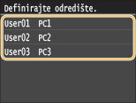 Za registriranje kombinacija postavki skeniranja i prikaz prema potrebi: Registriranje često korištenih postavki skeniranja (e-pošta/I-faks/zajednička mapa/FTP poslužitelj)