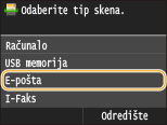 Za slanje e-pošte izravno s uređaja morate unaprijed napraviti pripreme koje uključuju definiranje postavki poslužitelja e-pošte. Konfiguriranje postavki skeniranja (Slanje e-pošte, slanje i primanje I-faksova)
