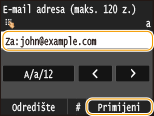 Kada definirate više odredišta, drugo odredište i ona koja slijede moraju biti registrirana u adresaru ili LDAP poslužitelju. Što se tče Cc i Bcc odredišta, možete definirati samo ona odredišta koja su registrirana u adresaru. Za korištenje adresara ili LDAP poslužitelja morate unaprijed završiti obavezan postupak registracije.