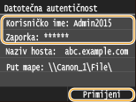 Konfiguriranje uređaja za skeniranje dokumenata u zajedničke mape Konfiguriranje uređaja za skeniranje dokumenata u FTP poslužitelj Dostupna odredišta za zajedničke mape/FTP poslužitelje ograničena su na odredišta registrirana u adresaru. Za određivanje odredišta pomoću adresara, potrebno je registrirati to odredište prije skeniranja relevantne mape/FTP poslužitelja.