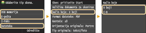 Odaberite <USB memorija> ili naznačite odredište pomoću <E-pošta>/<Datoteka>