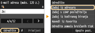 Prije korištenja te značajke potrebno je registrirati odredišta u adresaru. Registriranje u adresaru