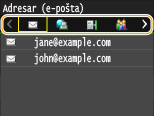 Adresar omogućuje definiranje odredišta odabirom s popisa registriranih odredišta ili pretraživanjem po imenu za odredišta s imenima primatelja.