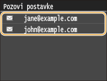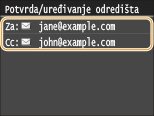 Kao odredište možete odabrati jedno od tri prethodna odredišta. Kada definirate prethodno korišteno odredište, uređaj postavlja iste postavke skeniranja kao što je gustoća koju ste koristili pri zadnjem slanju dokumenata na to odredište.