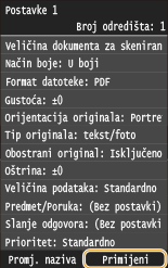 Kada ste ponovno birali postavke, kombinaciju postavki, možete promijeniti i postavke skeniranja prema potrebi.