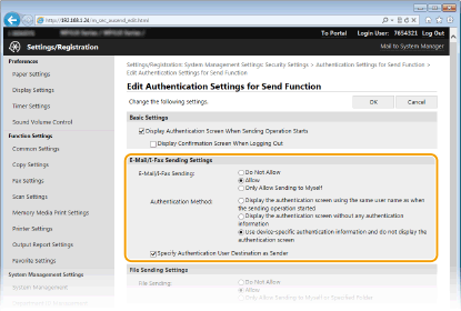 [Authentication Settings for Send Function].