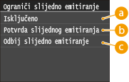Odaberite <Potvrda slijednog emitiranja> ili <Odbij slijedno emitiranje>.