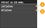 Zabranjuje pohranu podataka na USB memorijski uređaj. Skenirane podatke nije moguće pohraniti na USB memorijski uređaj.