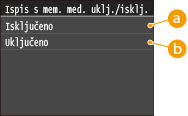 Dodirnite <Ispis s memorijskog medija uklj./isklj.>.
