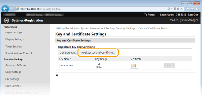 Kliknite [Register Key and Certificate] ili [Register CA Certificate].