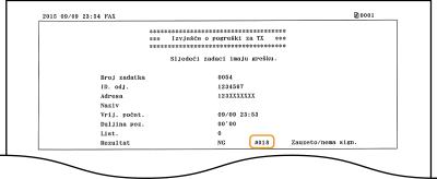 Faks nije bilo moguće poslati jer uređaj primatelja nije odgovorio u roku od 35 sekundi.