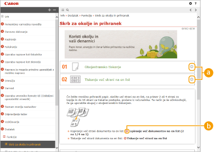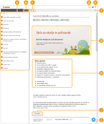 Kliknite, da odprete informacije o branju E-priročnik, iskanju po priročniku in druge informacije.