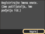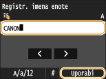 S številskimi tipkami vnesite ime enote (npr. uporabniško ime ali ime podjetja) in tapnite <Uporabi>.