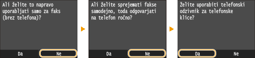 Tapnite <Da> ali <Ne>, da izberete način prejemanja.