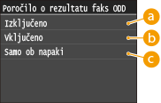 <Poročilo o rezultatu faks ODD> ali <Poročilo ODD e-pošta/I-faks/datoteke>
