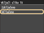 Ko izberete <Vključeno> ali <Samo ob napaki>, se v poročilo vključi tudi del faksa. Nastavite <Vključi sliko TX> za <Vključeno>.