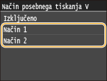 Te možnosti ni mogoče nastaviti, če je način <Način za prilagajanje črtne kode> nastavljen na eno možnost od <Način 1> do <Način 3>. Način za prilagajanje črtne kode