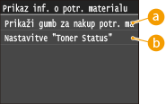 <Prikaži informacije o potr. materialu (RUI/Toner Status)>