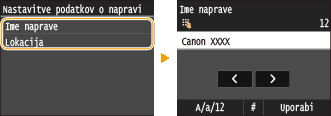 Izberite <Ime naprave> ali <Lokacija>