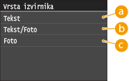 Kakovost skenirane slike lahko izberete glede na vrsto dokumenta, na primer za besedilne dokumente, dokumente z grafi in diagrami ali fotografije iz revij.