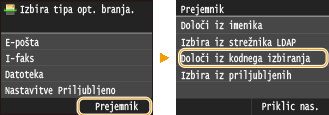 Naslovom v imeniku so dodeljene trimestne številke (kode za kodno izbiranje). Naslov lahko izberete tako, da preprosto vnesete njegovo kodo za kodno izbiranje.