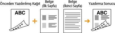 Önceden basılı kağıda yazdırma yaparken, 1 taraflı ve 2 taraflı yazdırma arasında değiştirme yaptığınız her seferde yüklenecek kağıdın yüzünü değiştirmeniz gerekir. Ancak <Kağıt Besleme Metodunu Değiştir> öğesi, <Baskı Yönü Önceliği> olarak ayarlanmışsa, önceden basılı kağıdı 2 taraflı yazdırma (kağıt çekmecesi için logolu taraf yukarı veya çok amaçlı tepsi için aşağı bakacak şekilde) için yüklerken kullandığınız yazdırma yüzünü 1 taraflı yazdırma için de kullanabilirsiniz. Bu ayar, özellikle sık sık 1 taraflı ve 2 taraflı yazdırma gerçekleştirdiğiniz zaman kullanışlıdır. Kağıt Besleme Metodunu Değiştir