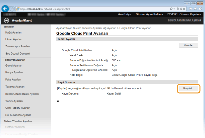 Makineyi Google Cloud Print'e Kaydetme