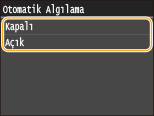 <Açık> öğesine dokunun. Makine, kullanılabilen iletişim modunu ve Ethernet türünü algılar ve otomatik olarak ayarlar.