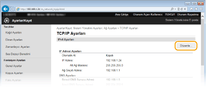 [IPv4 Ayarları] içinde [Düzenle] öğesini tıklatın.