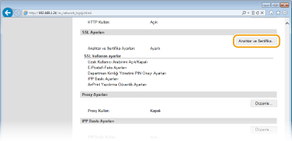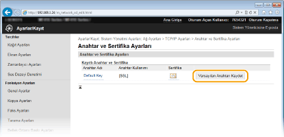 [TLS Ayarları] içinde [Anahtar ve Sertifika] öğesini tıklatın.