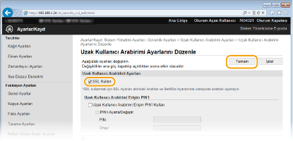 [Güvenlik Ayarları]  [Uzak Kullanıcı Arabirimi Ayarları] öğesini tıklatın.