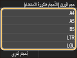 إذا لم يتم عرض حجم الورق الذي يتم تحميله، فحدد باللمس <أحجام أخرى>.