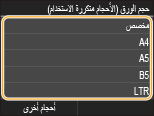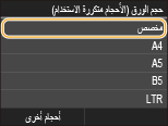 إذا لم تظهر الشاشة المبيّنه أعلاه عند تحميل الورقإذا كنت تقوم دائمًا بتحميل نفس الورق في علبة الورق متعددة الأغراض، يمكنك أن تتخطّى عمليات إعدادات الورق بتسجيل حجم ونوع الورق كإعداد افتراضي. ولكن عند تسجيل الإعداد الافتراضي، لا تظهر الشاشة المبيّنة أعلاه. لعرض الشاشة، قم باختيار <تحديد عند تحميل الورق> (تسجيل إعدادات الورق الافتراضية لعلبة الورق متعددة الأغراض).