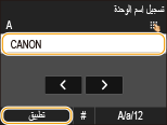 أدخل اسم الوحدة (مثل اسم المستخدم أو اسم شركة) باستخدام المفاتيح الرقمية, وانقر على <تطبيق>.