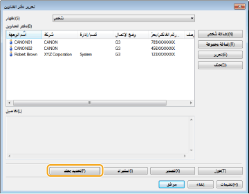 بمجرد أن تقوم بتسجيل الوجهات الأكثر استخدامًا لفاكسات الكمبيوتر في دفتر العناوين، فإنه يمكنك تحديد الوجهات متى تقوم بإرسال فاكسات الكمبيوتر بسهولة. أيضًا، يمكن استيراد بيانات دفتر العناوين بتنسيق CSV المنشأ على تطبيقات مثل Microsoft Excel إلى الجهاز، أو يمكن تصدير بيانات دفتر العناوين إلى ملف لاستخدامه على أجهزة فاكس أو تطبيقات أخرى.