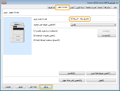 يمكنك استخدام برنامج تشغيل الطابعة PCL6 وكذلك برنامج تشغيل الطابعة UFR II. وتختلف إعدادات الطابعة المتاحة تبعًا لبرنامج تشغيل الطابعة. ولمزيد من المعلومات، انقر على [تعليمات] على شاشة كل برنامج من برامج تشغيل الطابعة.