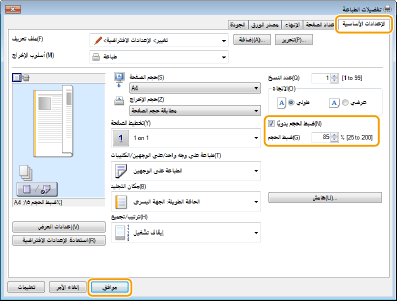 أدخل نسبة الطباعة في [ضبط الحجم]
