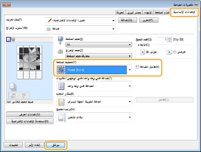 في [تخطيط الصفحة], حدد أبعاد الملصق الخاص بك (على سبيل المثال, [Poster [2 x 2]])