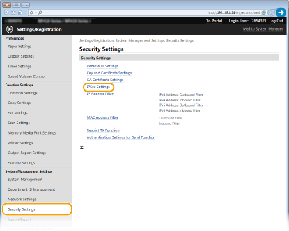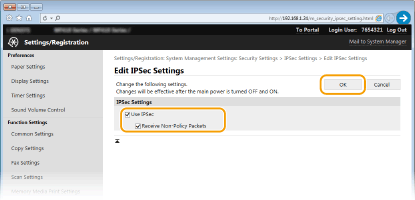 استخدام لوحة التشغيليمكنك أيضًا تمكين أو تعطيل اتصال IPSec من <قائمة> في الشاشة الرئيسية. استخدام IPSec