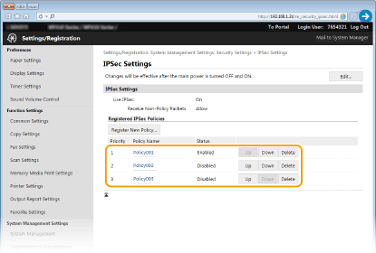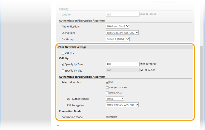 قم بتحديد الإعدادات [Valid for] و [Authentication]/[Encryption]/[DH Group].