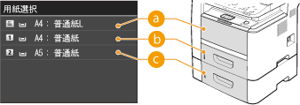 給紙部にセットした用紙のサイズと種類をあらかじめ設定しておく必要があります。