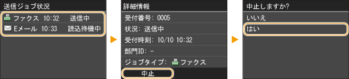 を押します。なお、送信状況を確認してから中止することもできます。
