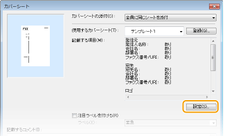 カバーシートに記載される項目が表示されます。内容を変更する場合は、[設定]をクリックします。