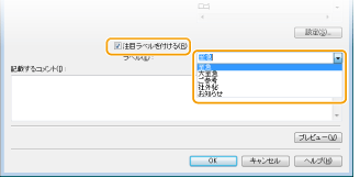 必要に応じて、[注目ラベルを付ける]にチェックマークを付け、カバーシートに記載するマークを[ラベル]プルダウンメニューから選ぶ