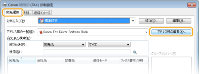 登録済みの宛先を変更/削除するときは、[アドレス帳]から宛先を選び、[編集]または[削除]をクリックします。