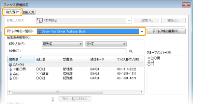 [アドレス帳の一覧]からアドレス帳を選ぶ
