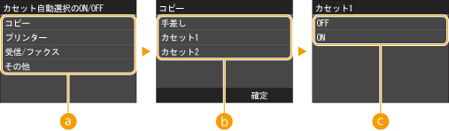 で選んだ給紙部を自動選択の対象にするには、<ON>に設定します。