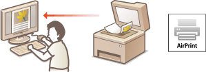 スキャンをするためには<Network Link Scanを使用>が<ON>になっている必要があります。AirPrintで使える機能を変更する