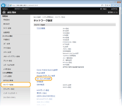 [ネットワーク設定][Eメール/I ファクス設定]をクリックする